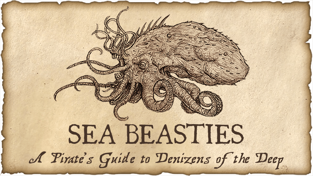 There’s a pyrate called Captain Mako who managed to create a sort of pyrate aid book with all manner of sea beasties documented. It’s a comprehensive list, but what makes Mako’s book extremely useful for sailin’ the high seas is that beyond the list of beasties, he also tells you exactly how to survive if you sail into one.